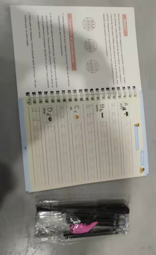 Aidez votre enfant à maîtriser l’écriture tout en s’amusant grâce au Cahier d’Écriture Magique, une méthode innovante à rainures qui guide naturellement la main et facilite l’apprentissage dès les premières utilisations.